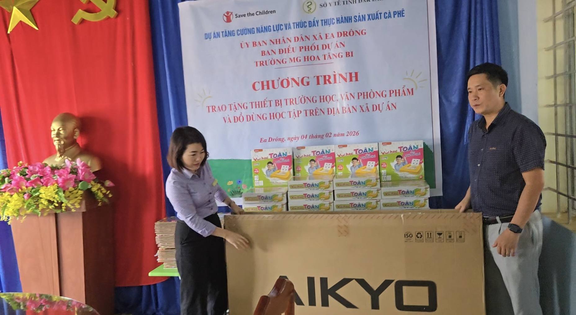 Chiều ngày 04/02/2026, Trường Mẫu giáo Hoa Tăng Bi đã phối hợp tổ chức chương trình tiếp nhận và trao tặng thiết bị và đồ dùng trường học từ Dự án Save the Children – một hoạt động mang ý nghĩa thiết thực, góp phần nâng cao điều kiện dạy và học của nhà trường.